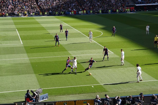 El Bernabéu también bulle el día del clásico. 23 de diciembre, acaban de caer Cataluña y el gordo. Mañana hablará el rey. Imaginé un ambiente patriótico antes del partido pero se habla otro idioma. La colonización de nuestros días: árabes, chinos, americanos, hindúes. Más inglés esperanto que castellano. Igual que en el vestuario. No faltan las banderas y el escudo del toro, por supuesto, pero no hay más que en los balcones del centro de la ciudad. Muchos micrófonos, mucho selfie, sensación de privilegio por ver en directo esa jugada que se analizará como si hubiera durado horas y no unos pocos segundos. Como si fuera consecuencia de sesudos razonamientos e inversiones millonarias y no del azar de la espinilla del portero que desvía el tiro a puerta. Los jugadores salen al plató bien peinados y muy serios, conscientes del espectáculo global: dicen que una décima parte de la población mundial los estará viendo. Y entre todo esto sucede algo que aún me produce escalofríos: es la hora de la comida y no he visto a nadie sacar el bocadillo hecho en casa.